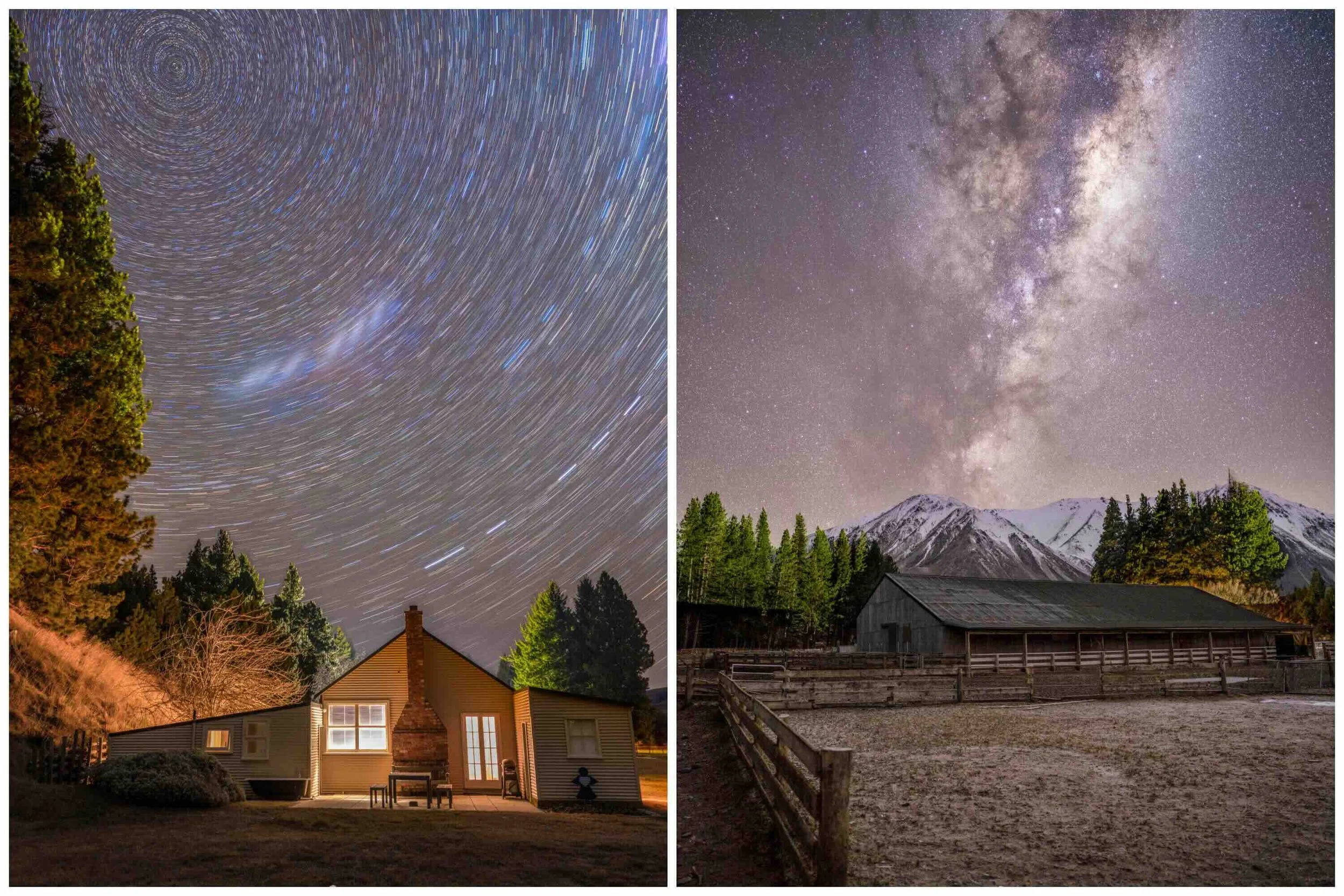 On another occasion, I hosted a winter workshop based at Lake Heron station, staying in the 3 bedroom historic cottage on site. We were extremely fortunate to have clear skies for 3 nights straight which meant ample opportunities to shoot astro including star trails and being in a remote location there is no light pollution either which made for very dark skies and bright stars!